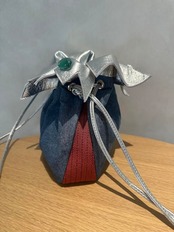 素材:スペイン産子羊本革・日本産デニム・100%シルクアンティーク着物・シーグラス