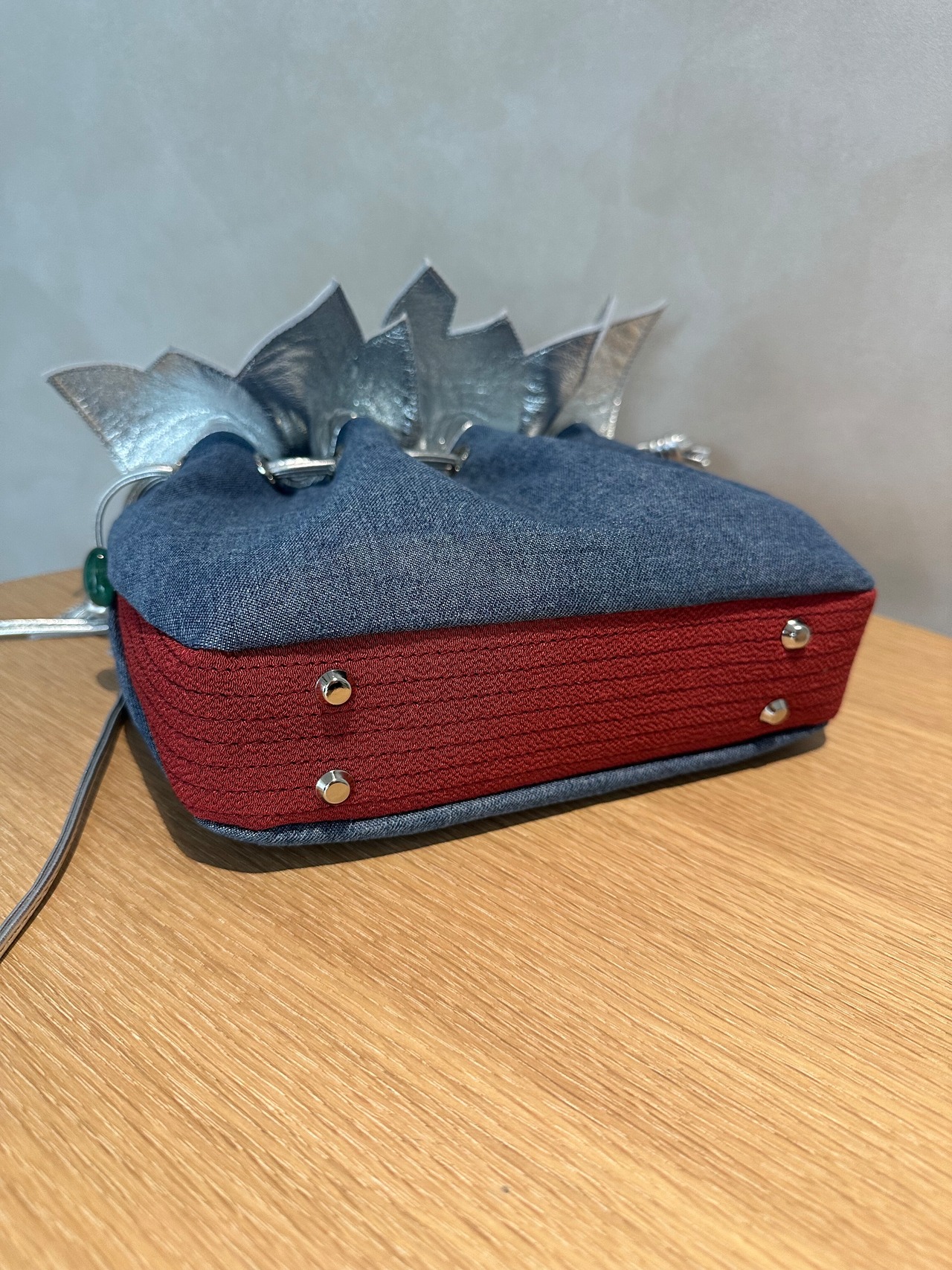 カラー:シルバー(本革)×ブルー(デニム)×赤(着物)