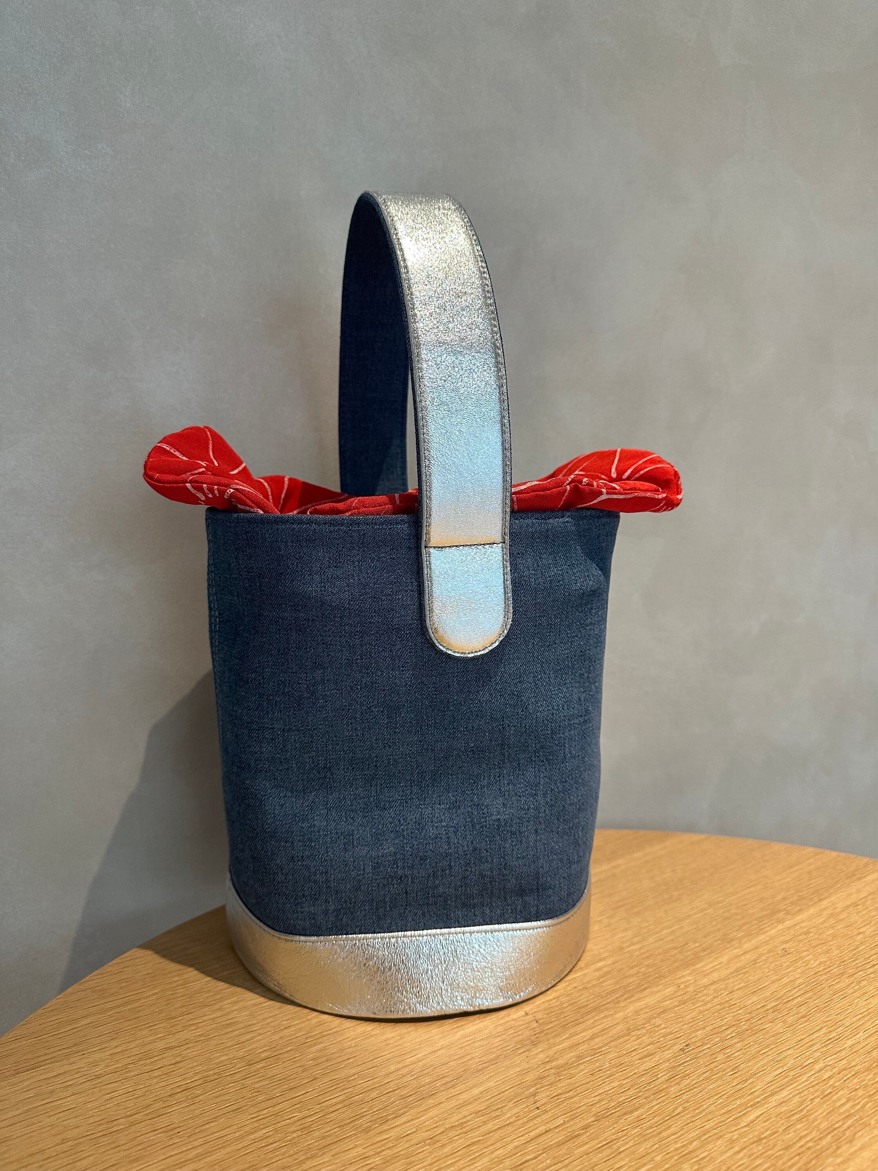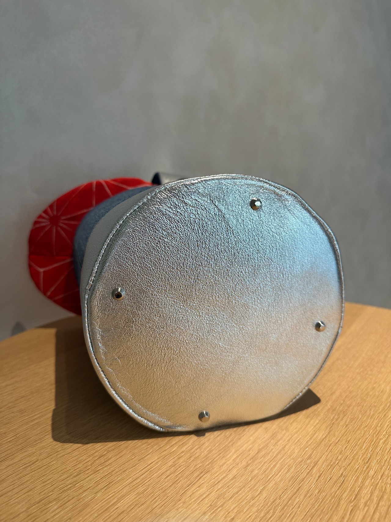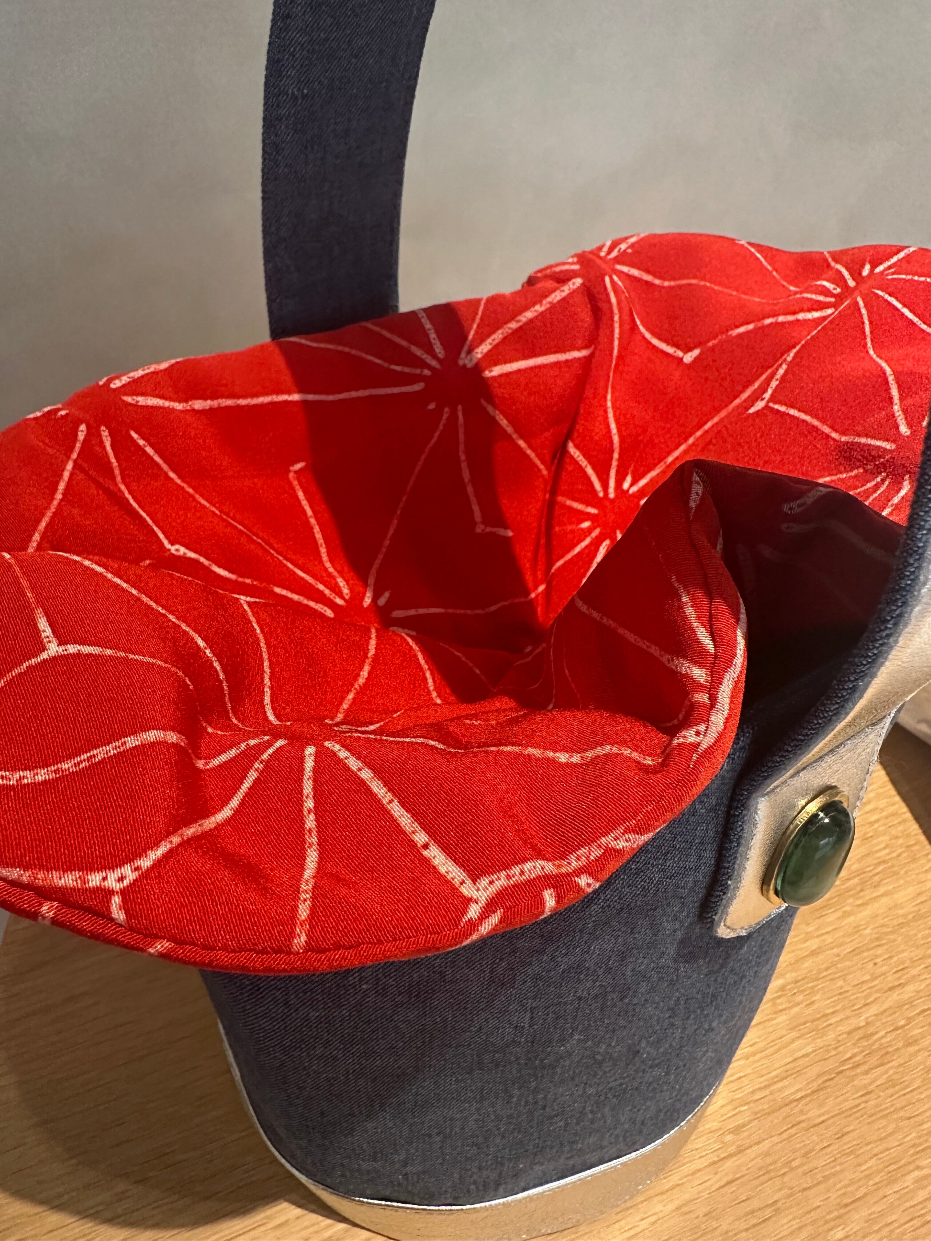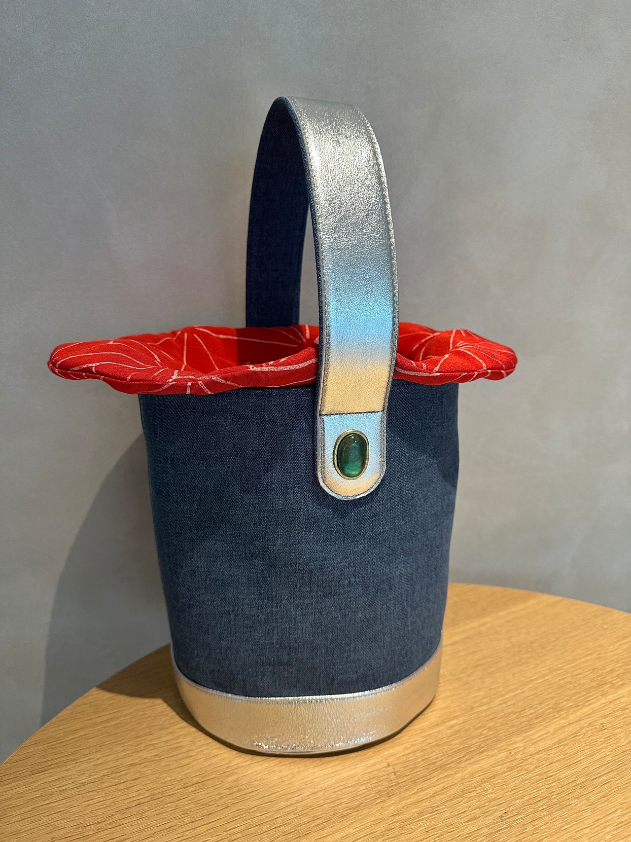 カラー:シルバー(本革)×ブルー(デニム)×赤(着物)